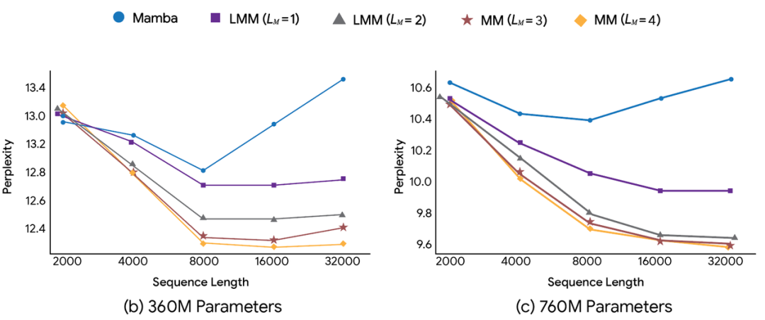 • 长期记忆越深,模型困惑度越低 -