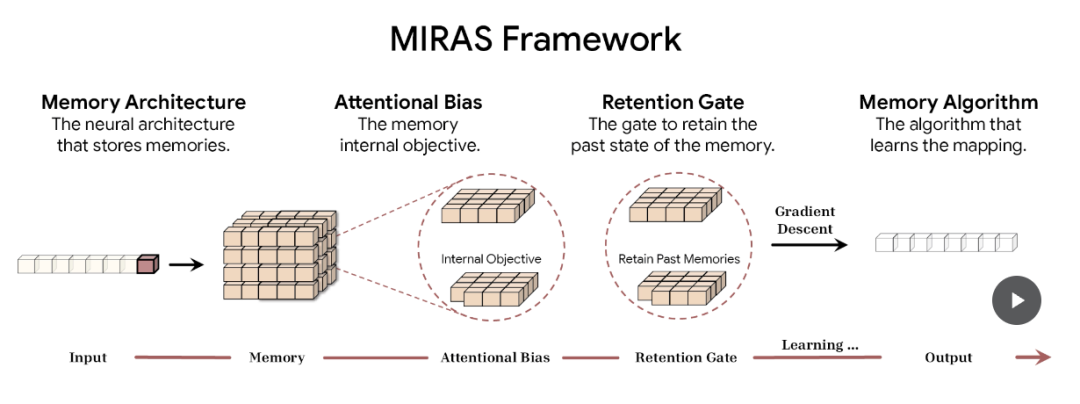 • MIRAS:一个从理论上重新定义序列模型“记忆行为”的框架。