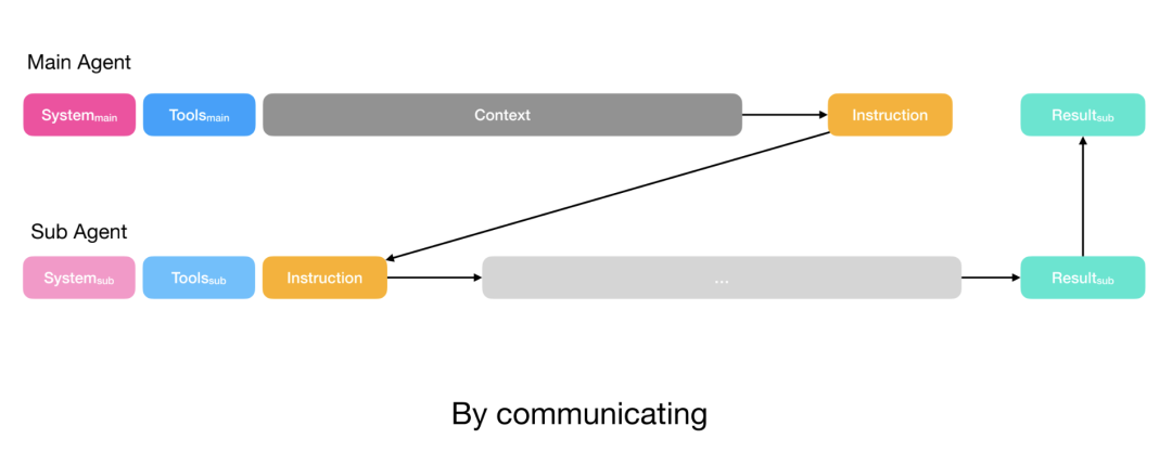 • 有意识地共享上下文: 对于简单任务,仅传递指令;对于子 agent 需要更多上下文的复杂任务,则传递完整上下文(例如轨迹和共享文件系统)