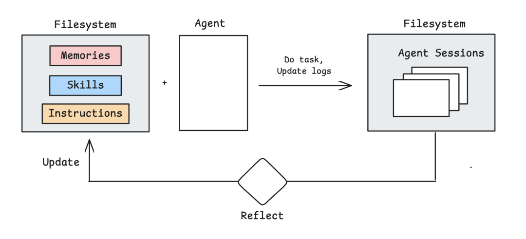 这在记忆方面尤为有趣。这与“睡眠时计算”的工作有一定关联,该研究表明 agent 可以在离线状态下思考自身上下文。可以想象,agent 自动反思过去会话,并据此更新自身记忆或技能;或者直接反思自身长期积累的记忆,以便更好地整合并为未来任务做准备,就像人类一样。