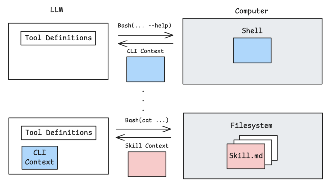 但我们已经看到了一种趋势:为了更好地进行上下文管理,开始采用渐进式披露。这是一种设计模式,即只在一开始展示最核心的信息,而在需要时才逐步揭示更多细节。