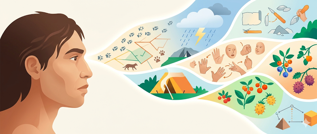 人理解世界,并不是从“语言”开始的,而是从更底层的几套能力开始的:感觉、行动、记忆、预测、分类、情绪和社会互动。语言出现以后,这些能力没有消失,只是被大幅放大、整理和外化了。