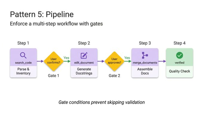 对于复杂任务,你不能承受跳过步骤或忽略指令的代价。管道模式强制执行严格的、顺序的工作流程,并设有硬性检查点。